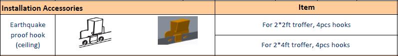 Installation accessories for led troffer light fittings: