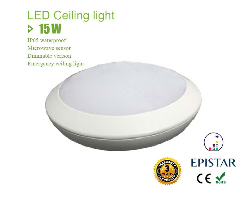 5.Polycarbonate IP65 Round 15W Microwave Sensor LED Ceiling Light.